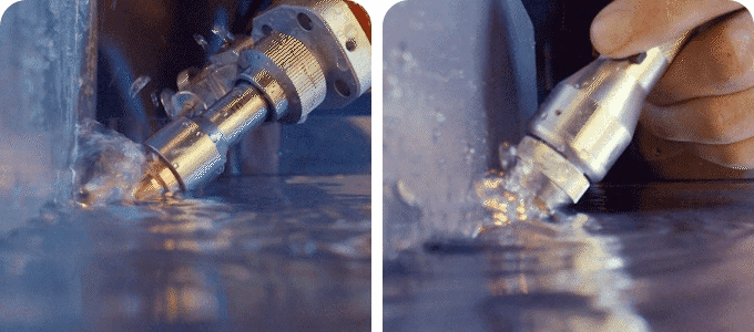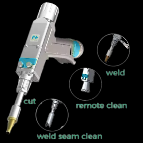 Wenn Sie vom Laserschweißen/-schneiden zum Laserreinigen wechseln müssen, können Sie einfach das Fokussierspiegel-Einführwerkzeug und die Reinigungsdüse austauschen und direkt mit dem Metallabtrag fortfahren.